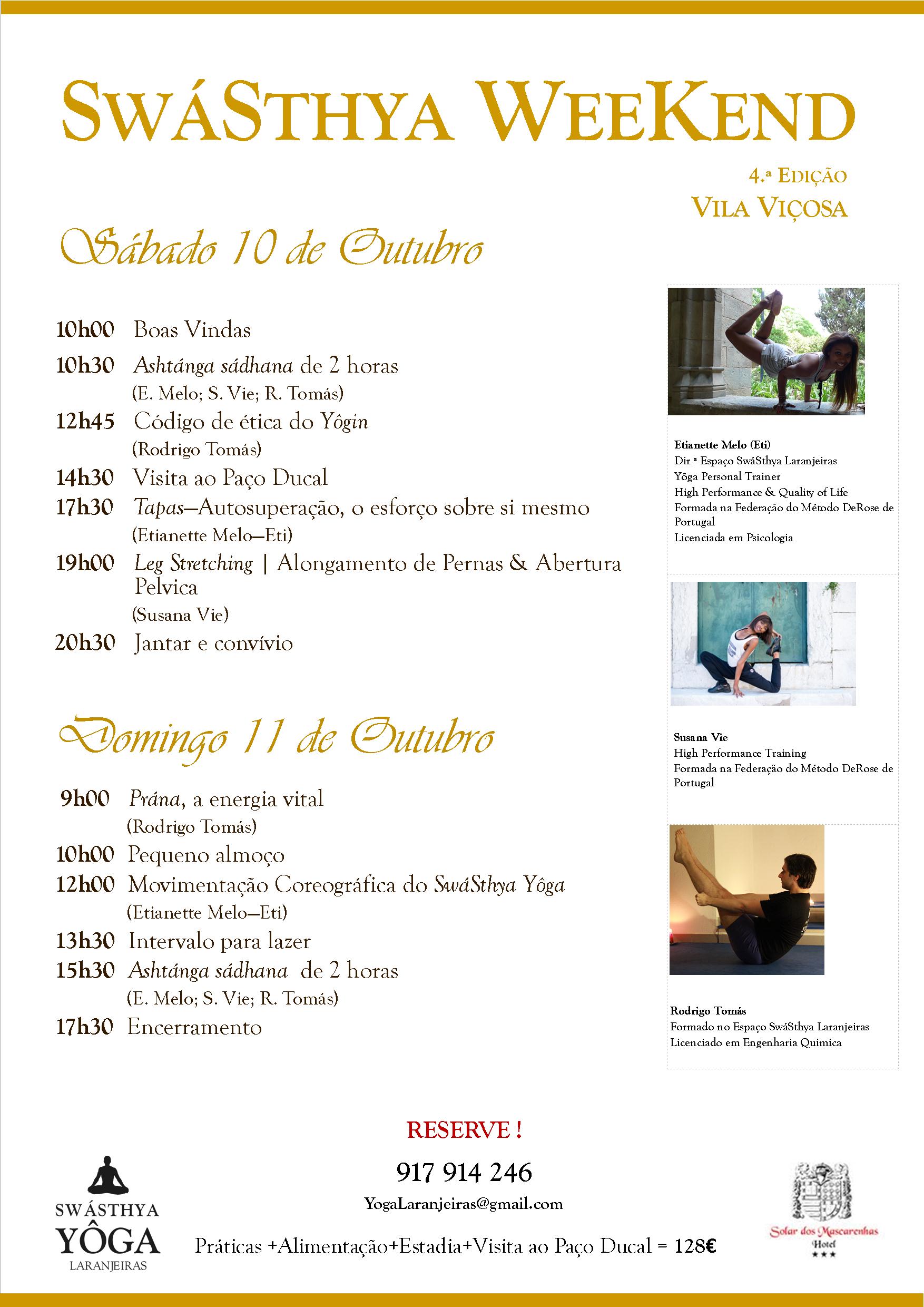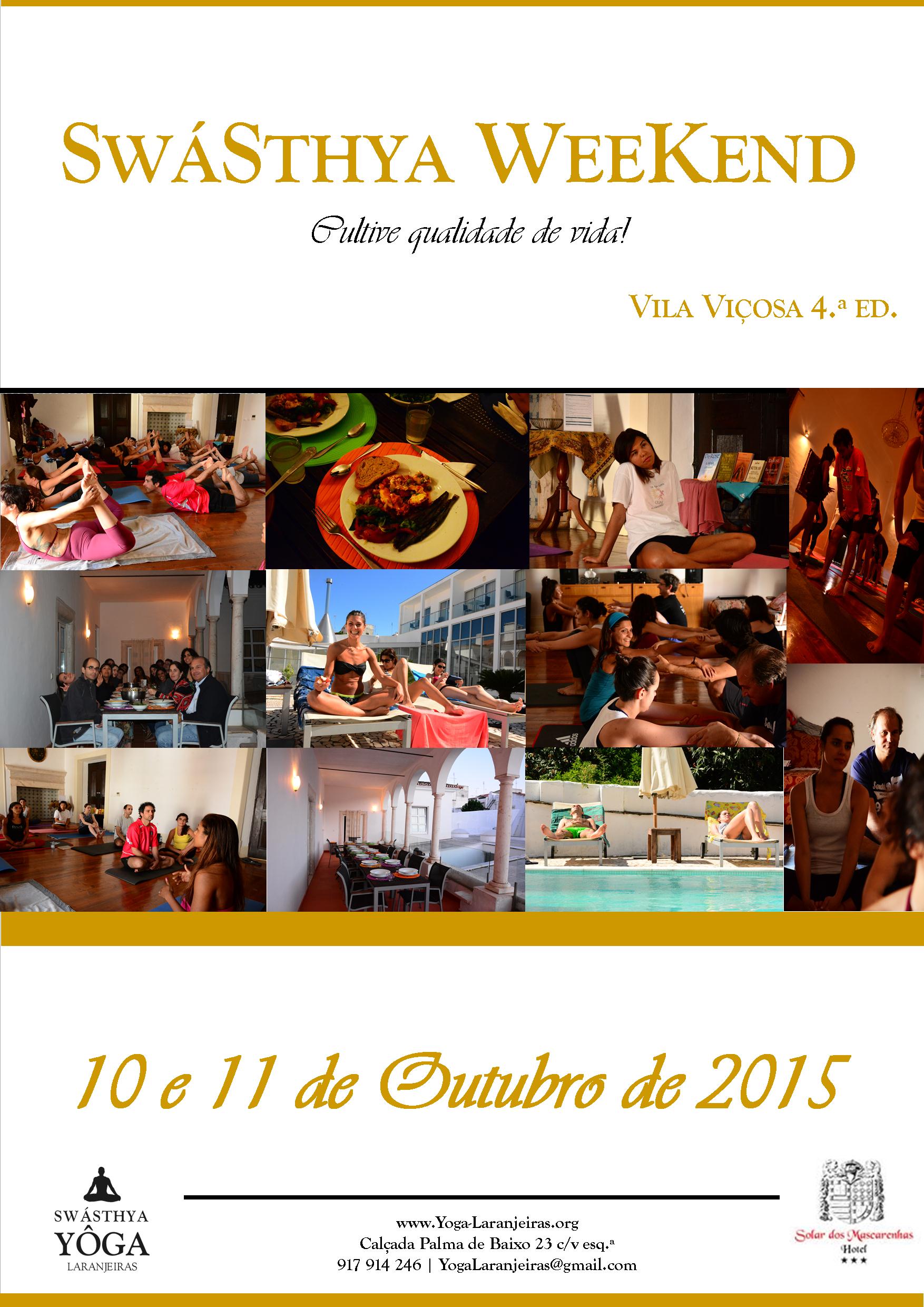 Pela 4 vez irá realizar-se o SwáSthya Weekend no Hotel Solar dos Mascarenhas de Vila Viçosa, no Alentejo, dias 10 e 11 de outubro. Irei dar o treino de LEGS STRETCHING | ALONGAMENTO & ABERTURA PÉLVICA. Tal como em edições anteriores, coloque a rotina em pausa e vamos a isso!